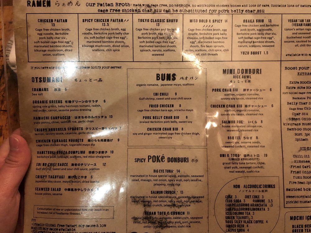 The menu boasts a delightful array of ramen, such as the Chicken Paitan Ramen and the tantalizing Spicy Chicken Paitan, featuring rich flavors from cage-free chicken broth and Berkshire pork belly char siu. The buns, like the Fried Chicken Bun and Pork Belly Char Siu Bun, offer an exciting twist, creating a perfect shareable treat.